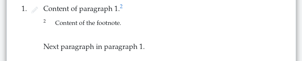 Ainsi, si votre référence de note de bas de page se lit {{FOOTNOTE 2}} comme dans l'exemple ci-dessus, et que vous souhaitez qu'elle soit en exposant, elle doit se lire{{^{{FOOTNOTE 2}}}}.
