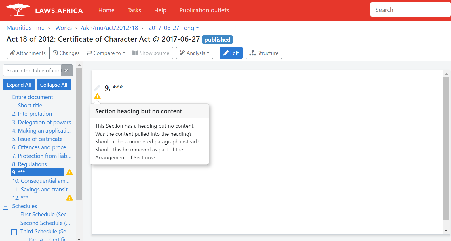 Vous trouverez ci-dessous un exemple de section vierge et la manière dont elle doit être balisée.