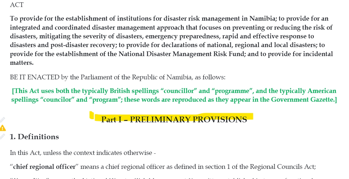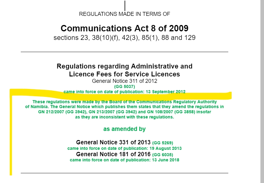 Veuillez supprimer le texte qui vient immédiatement après les armoiries ou le logo de la Namibie, et avant l'"arrangement des règlements"