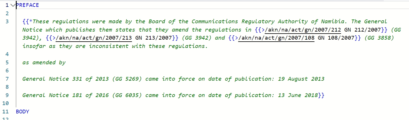 Les documents Word ont une table des matières (ToC) d'un "Arrangement of Regulations". Cette table des matières doit être supprimée dans chaque document avant de pouvoir l'importer. Pour supprimer la table des matières :