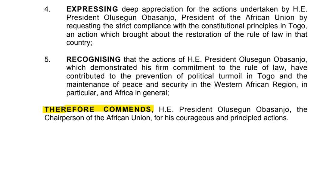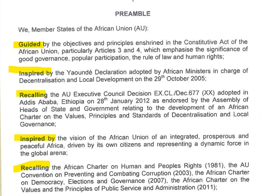 pour un texte tel que « L'Union africaine, rappelant X, notant Y, etc. » Nous n'avons pas encore trouvé d'utilisation pour PREFACE.