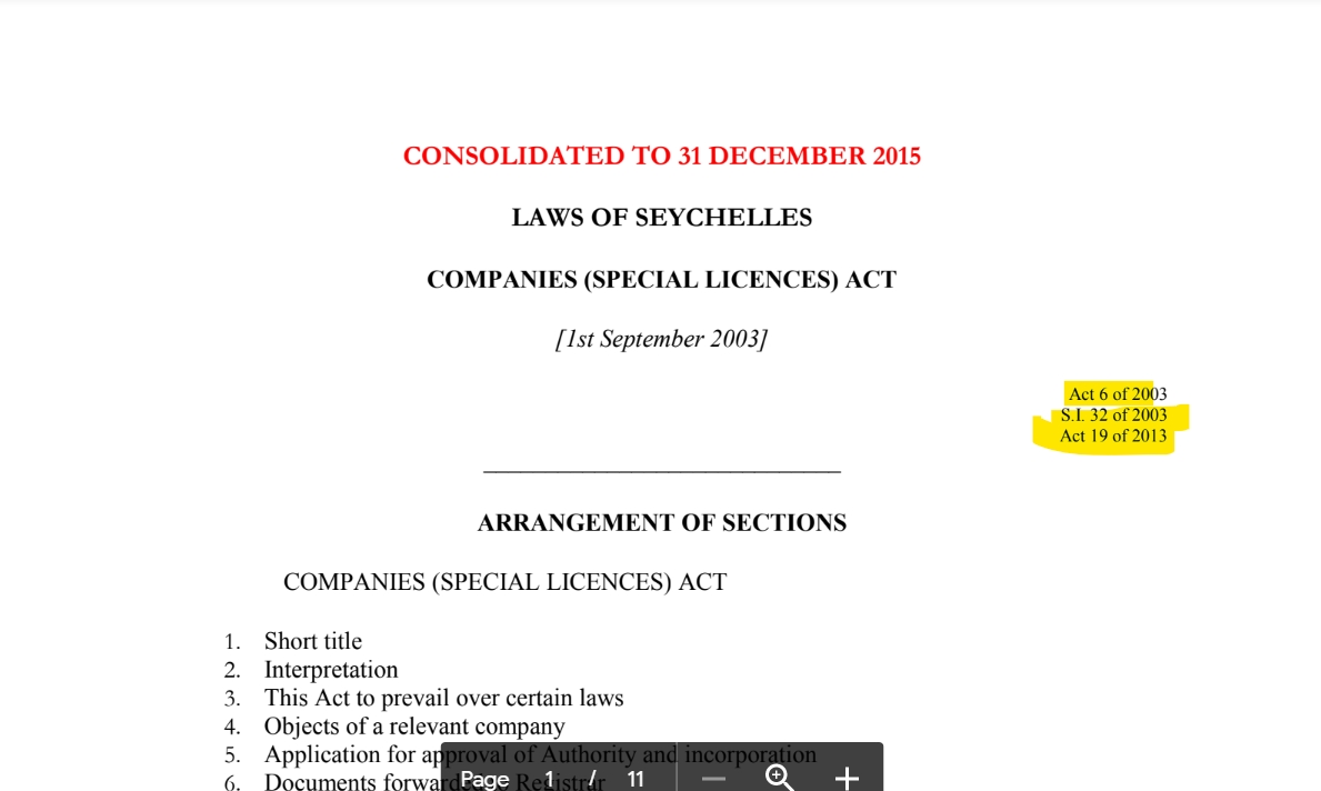 Certaines copies PDF des lois consolidées aux Seychelles étaient accompagnées de lois subsidiaires dans le même document. La législation subsidiaire a été séparée de ses travaux principaux pour créer des documents PDF distincts (autonomes).