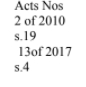 Veuillez les relier ensemble, comme ceci : {{*[Actes Nos. 2 de 2010 s. 19; 13 de 2017 s. 4]}}