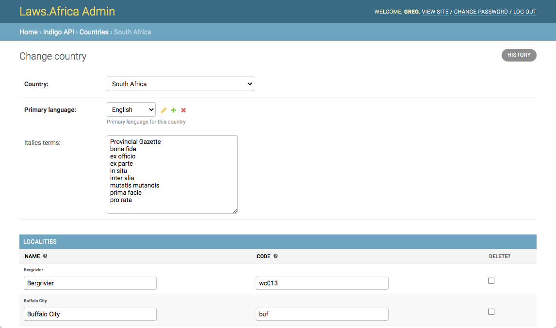 Certains pays ont des termes spécifiques qui sont toujours en italique dans leur tradition juridique. Par exemple, en Afrique du Sud, les termes latins tels que pro rata et in situ sont toujours en italique. La plateforme peut être configurée pour effectuer cette mise en italique automatiquement.