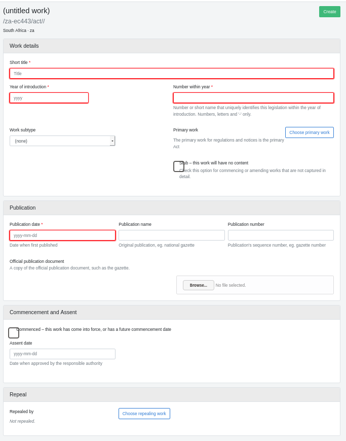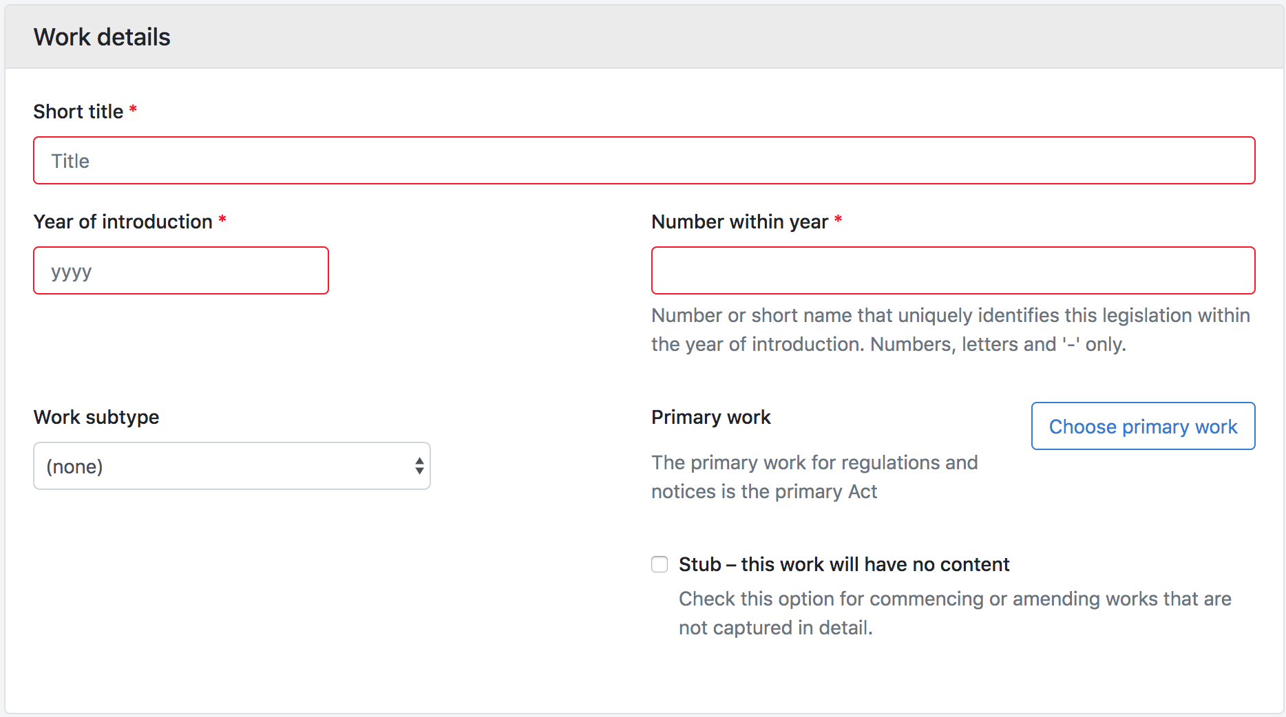 Vous l'utiliserez pour remplir autant de détails que possible dans le formulaire "Nouvel ouvrage". Les instructions ci-dessous supposent que vous utilisez une copie de l'œuvre telle qu'elle a été publiée dans la Gazette (ou dans une autre publication officielle).