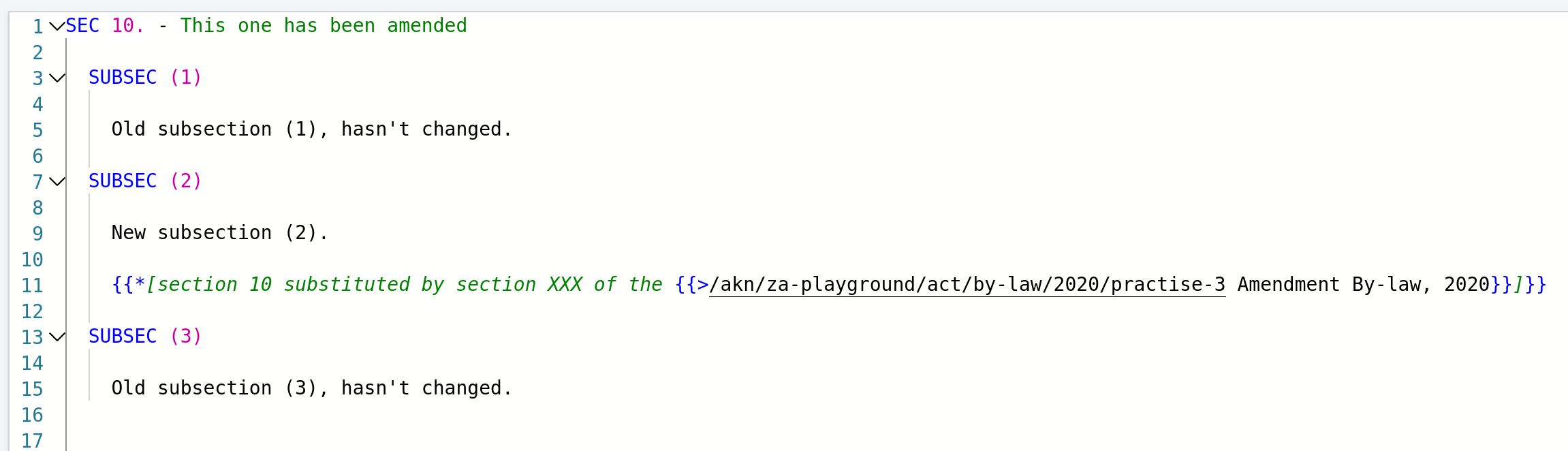 {{*[paragraphe (2)remplacé par l'article8(1)(b) of the {{>/za-playground/act/by-law/2020/practice-3 Amendment By-law, 2020}}]}}– notez qu'il ne commence pas par une majuscule et qu'il n'y a pas d'espace entre les crochets dans la référence à l'article 8(1)(b).