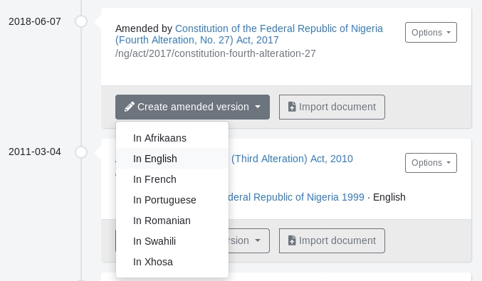 Au nouveau point dans le temps, cliquez sur Créer une version modifiée et sélectionnez la langue.