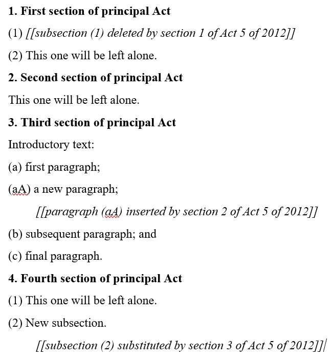 1. À l'article 1 de l'acte principal, supprimer le paragraphe (1). 2. À l'article 3 de l'acte principal, après le paragraphe (a), insérer ce qui suit : "(aA) un nouveau paragraphe ;" 3. À l'article 4 de l'Acte principal, remplacer le paragraphe (2) par ce qui suit : "(2) Nouveau paragraphe : "(2) Nouveau paragraphe."
