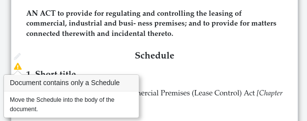 Solution : Supprimez l'introduction "Schedule" (mot-clé, titre et sous-titre) et assurez-vous que le corps du document commence après le mot-clé CORPS.