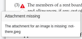 Solution : Assurez-vous que le nom du fichier donné dans la vue Édition correspond bien à une pièce jointe dans le document.