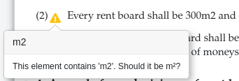 Solution : Mettre le 2 en exposant : … be 300m2 and … → … be 300m{{^2}} et …, ou faire un commentaire s'il ne doit pas être mis en exposant.