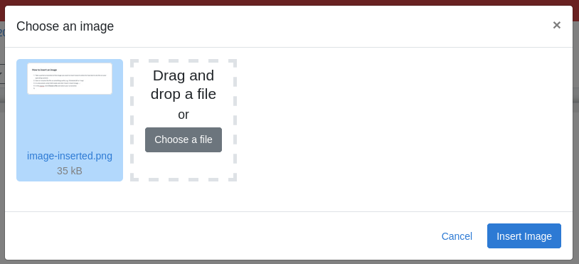 Une fois l'image téléchargée, sélectionnez-la et cliquez sur Insérer une image.