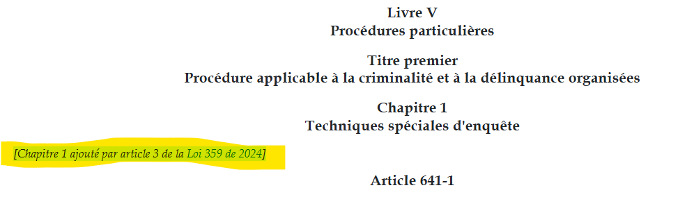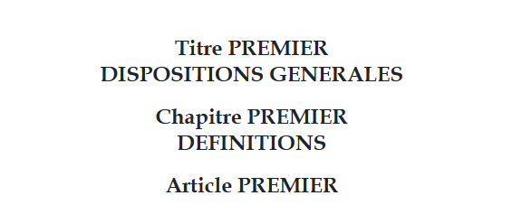 &#x20;eg. Chaptire 1 and 2, in Livre V of  this work <https://edit.laws.africa/documents/19851/>