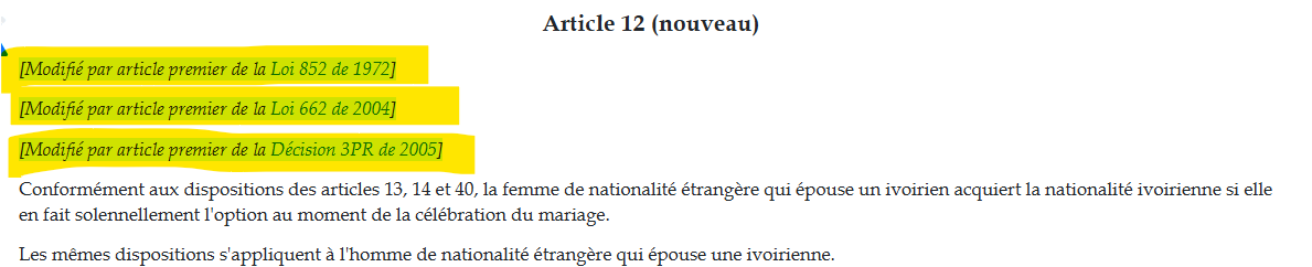 Example of Loi with Amendments and several points in time:  Loi Portant Code de la Nationalité Ivoirienne, 1961 <https://edit.laws.africa/works/akn/ci/act/1961/415/>