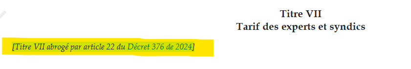 **When an entire Title (Titre) is repealed** which includes Chapters, Sections and Articles, remove these from the work, leave in the Title heading and put one consolidated annotation under the Title. Do not use \*\*\* for repealed provisions.\